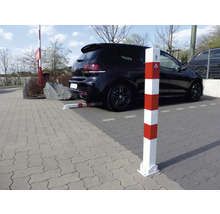 Absperrpfosten/Klapppfosten Vierkantrohr 70 x 70 mm mit Profilzylinderschloss 900 mm Überflur o. Öse weiss-rot H = 900 mm