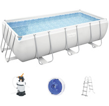 Aufstellpool Framepool-Set Bestway Power Steel™ eckig 404x201x100 cm inkl. Sandfilteranlage & Leiter grau