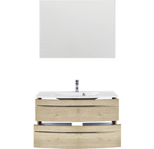 Badmöbel-Set Marlin 3040 Frontfarbe Eiche natur Holzdekor 3-teilig mit Keramik-Waschtisch weiss BxHxT 91 x 198,2 x 51 cm mit Spiegel