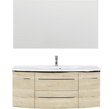 Badmöbel-Set Marlin 3040 Frontfarbe Eiche weiss Holzdekor 3-teilig mit Mineralmarmor-Waschtisch weiss BxHxT 122,4 x 198,2 x 48 cm mit Spiegel
