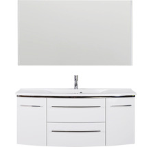 Badmöbel-Set Marlin 3040 Frontfarbe weiss hochglanz 3-teilig mit Mineralmarmor-Waschtisch weiss BxHxT 122,4 x 198,2 x 48 cm mit Spiegel