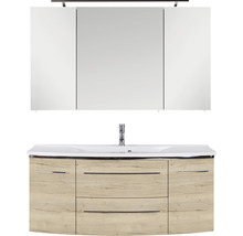Badmöbelset Marlin Bad 3040 120 cm Eiche Struktur weiss inkl. Spiegelschrank und Mineralmarmor-Waschbecken weiss