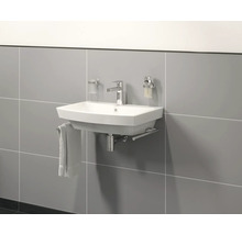 Darum sollten Sie zugreifen: Der Standard-Waschtisch Savona kommt in schlichter weisser Sanitärkeramik. Das Waschtischset hält neben dem eigentlichen Waschtisch zwei Handtuchhalter für Sie bereit.