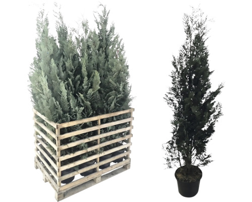 Blaue Säulenzypresse, Scheinzypresse FloraSelf Chamaecyparis lawsoniana 'Columnaris Glauca' H 150-175 cm im Co 12 L (12 Stk) 1 Palette
