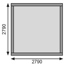 - Aufstellmasse B x T ohne Dachüberstand: 297x297 cm