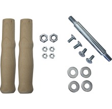 - HinweisSet besteht aus: 2 x Holzgriff, 4 x Senkkopfschraube M8x20, 4 x Mutter M8, 1 x Schraubachse 17mm mit M12 Gewinde, 4 x U-Scheiben M12, 2 x Mutter M12