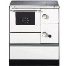 Dauerbrandofen Westminster K76-70 weiß Backraum links mit Stahlplatte-Kochfeld