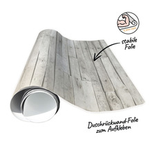 - HinweisDank des Spezialklebers lässt sich die Duschrückwand-Folie leicht und blasenfrei aufkleben, ist repositionierbar und ist rückstandsfrei wieder ablösbar.