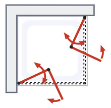 Der Garant-2.0-Drehfalttür-Eckeinstieg setzt sich aus insgesamt vier 6 mm starken Sicherheitsglas-Elementen (ESG) zusammen. Die zwei Türelemente öffnen über zwei formschöne Griffe über Eck. Auf diese Weise wird ein grosszügiger Einstiegsbereich bereitgestellt. Die raumsparende Tür lässt sich zudem einfach zusammenfalten, sodass auch im geöffneten Zustand kein Element in den Raum hineinsteht. Dies macht die Drehfalttür auch für kleine Bäder zur optimalen Türlösung. Die eleganten Profile und Anbauteile setzen die Duschtüre zudem optimal in Szene und halten Sie sicher in Position.