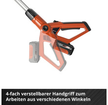 Der Teleskopstab lässt sich auf die gewünschte Höhe einstellen. So können Gewächse in der Höhe zwischen 880 und 1840 mm erreicht werden. Für die Inbetriebnahme braucht es lediglich noch den Akku und das Ladegerät. Mit dem dem neigbaren Aufsatz sind verschiedene Schnitte im Handumdrehen möglich. Das spart Zeit und Nerven – gleichzeitig besteht ohne Leiter kein Sicherheitsrisiko mehr beim Arbeiten im Garten.