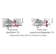 Ferner findest Du im Stulp die Aussparungen für die Schlossfalle und den Schlossriegel. Das Dornmass des Einsteckschlosses beläuft sich auf 55 mm. Unter dem Dornmass versteht man den Abstand von der Mitte des Schliesszylinders bis zur Stulpvorderkante. Am besten prüfst Du dieses Mass vor der Bestellung.