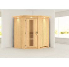 Elementsauna Karibu Maurin ohne Ofen mit Dachkranz und Holztür mit Isolierglas wärmegedämmt