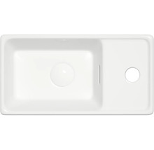 Darum solltest Du zugreifen: Dieses Handwaschbecken ist dank seiner Abmessungen von 39,5 x 21 cm ideal für kleine Bäder und Gäste-WCs. Die rechteckige, eckige Form sorgt für klare Linien und eine moderne Optik. Hergestellt aus Sanitärkeramik bietet das Becken eine robust und langlebige Option für Dein Bad. Die glänzende Oberfläche ist nicht nur attraktiv, sondern auch leicht zu reinigen, wodurch der Pflegeaufwand minimal bleibt. Das besondere Highlight ist die slim Bauweise, die durch ihre dünnen Wände eine elegante und filigrane Erscheinung sicherstellt. Mit einem vorhandenen Hahnlöcher und einem Überlauf ist das Becken funktional durchdacht und verhindert zuverlässig das Überlaufen des Wassers.