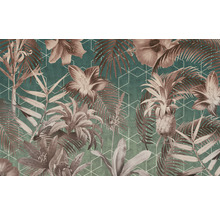 Für das Tropenfeeling in den eigenen vier Wänden, ist diese Fototapete genau das Richtige. Die grünen Palmzweige und der wunderschöne Hibiskus in rosé, sorgen für ein exotisches Abenteuer direkt an der Wand. Das bizarre Origamimuster schenkt der Wandgestaltung noch mehr Tiefe und einen exklusiven 3D-Effekt.