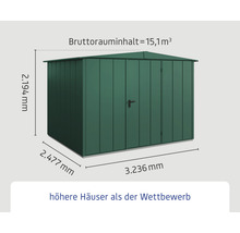 Gartenhaus Hörmann EcoStar Elegant-S Typ 3 RAL6005 Einzeltür 323,6 x 247,7 cm grün