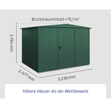 Gartenhaus Hörmann EcoStar Trend-S Typ 3 RAL6005 Einzeltür 323,6 x 247,7 cm grün