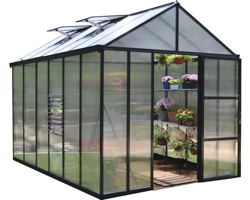 Gewächshaus Palram – Canopia Glory 8x12 Hohlkammerplatten 10 mm inkl. Fundament, Regenrinnen, automatischer Fensteröffner 244,5 x 364 cm grau