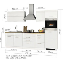 Held Möbel Küchenzeile Mailand 290 cm Frontfarbe weiss Hochglanz Korpusfarbe weiss