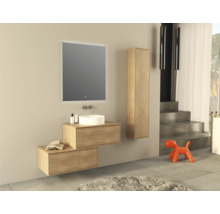 Der Hochschrank NOVE ist ideal für Wandmontagen geeignet, was Platz auf dem Boden spart und ein aufgeräumtes Erscheinungsbild unterstützt. Mit seinen Massen von 160 cm in der Höhe, 35 cm in der Breite und einer Tiefe von 20 cm bietet er eine schmale Bauweise, die sich auch gut in kleinere Räume integrieren lässt. Die Front des Schranks in Tabak Eiche wirkt durch die matte Beschichtung besonders edel und harmonisch zu modernen Bädern.
