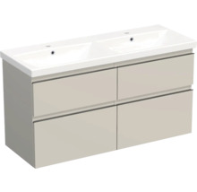 Jungborn TRENTA Doppelwaschbecken mit Unterschrank BxHxT 120x65x45 cm Frontfarbe cashmere glänzend - Griffleiste schwarz
