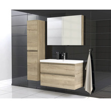 Jungborn TRENTA Waschbecken mit Unterschrank BxHxT 100x65x45 cm Frontfarbe halifax eiche natur - Griffleiste schwarz