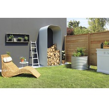 Der Holzunterstand Vitavia aus Zincalume® ist eine moderne und elegante Art und Weise, Ihr Kaminholz vor direkten Wettereinflüssen geschützt im Freien zu lagern.Bei dem Werkstoff „Zincalume®“ handelt es sich um mit Zink und Aluminium beschichtetes Stahlblech, das durch die Beschichtung jahrelang resistent gegen Umwelt- und Witterungseinflüsse ist. Seine Lebensdauer ist vier Mal länger als bei galvanisiertem Stahl. Zincalume® wird vorwiegend eingesetzt bei Industriegebäuden und Dacheindeckungen. Das Material ist hervorragend geeignet zum Bau des „Holzlagers“.Die sehr stabile Welle und die widerstandsfähige Legierung erlauben es, auch organische Materialien, die feucht werden können, unter freiem Himmel zu lagern. Bei einer Materialstärke von 0,65 mm behält der Holzunterstand trotz großer Lastaufnahme seine Form. Der Unterbau ist aus Aluminium. Der Holzunterstand wird in einzelnen Paneelen als Bausatz geliefert. In dem Bausatz sind Niete und Nietzange enthalten. Die Metallkonstruktion wird mit dem Unterbau verbunden und anschließend mit Winkeln an einer Wand verschraubt (kann nicht frei stehen!). Der Holzunterstand ist in der Standardtiefe von 40 cm sowohl im Quer- als auch im Hochformat und in drei verschiedenen Farben – Blank, Rubin und Granit – erhältlich. Erhöhten Lagerbedarf deckt der Holzunterstand 858 Hoch dank seines erweiterten Fassungsvermögens von 1,8 m³ ab. In der tiefen Variante ist der hohe Holzunterstand in Blank und Granit erhältlich.