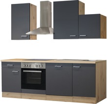 Küchenzeile mit Geräten Flex Well Tiago 220 cm Frontfarbe basaltgrau - Korpusfarbe san remo eiche hell 00011831