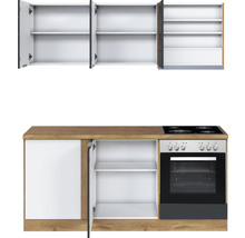 Küchenzeile mit Geräten Held Möbel Florenz 240 cm Frontfarbe grau Korpusfarbe eiche hell 1113.6293