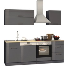 Küchenzeile mit Geräten Held Möbel Mailand 220 cm Frontfarbe grau Korpusfarbe graphit 564.1.6211