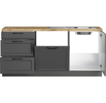 - Enthaltene Küchenschränke: Kühlumbauschrank 178er Nische, 3 x Hängeschrank 60 cm, 2 x Auszugunterschrank 60 cm, Spülenunterschrank 120 cm, Eckunterschrank mit Fachboden, Herdumbauschrank mit fester Blende