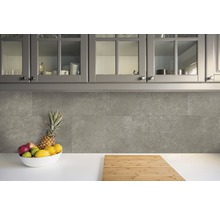 Die robuste Vollplatte mit einer hochwertigen Deckfolie aus HD-Material mit Reliefstruktur in matter Mineral-Optik, Trägermaterial Hartkern Gx Core ist 100% recyclebar und bietet die Alternative zur Fliese, Tapete, MDF-Paneel und Wandfarbe.