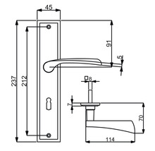 Darum solltest Du zugreifen: Die beiden 8 cm starken Langschilde sind 45 mm breit und 237 mm hoch. Sie verzieren Deine Tür nicht nur, sondern dienen gleichzeitig als Bohrschablone, wenn Du Dich an die Montage der Langschildgarnitur machst. Im Lieferumfang der Garnitur findest Du neben den Buntbartschilden die passenden Buchsen und Schrauben sowie die beiden 114 mm langen Drücker.