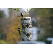 Mit diesem Meisenknödelhalter locken Sie eine Vielzahl von Singvögeln in Ihren Garten oder auf Ihren Balkon. Der Futterspender eignet sich ideal für die Verfütterung von dobar Meisenknödeln oder auch weiterem Fettfutter für Vögel. Der Knödelhalter ist gefertigt aus naturbelassenen Stämmen der Weißbirke aus nachhaltiger, FSC-zertifizierter Forstwirtschaft. Dank der abnehmbaren Oberseite des Futterspenders kann dieser kinderleicht befüllt und gereinigt werden. Mit der Kordel können Sie den Meisenknödelhalter einfach überall aufhängen. Ein Futterspender wie dieser ist eine praktische Alternative zu einem klassischen Vogelhaus. Die Herstellung in europäischer Produktion erfolgt in Handarbeit mit Fokus auf bester Qualität in der Verarbeitung. Die Außenmaße der Vogelfutterstation sind ca. 39 x 19 x 29 cm (L x B x H), bei einem Gewicht von ca. 1 kg.