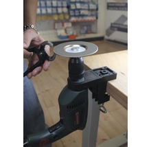 - ArtikelvorteilMit Hilfe dieser Spannvorrichtung kann die Bohrmaschine stationär eingesetzt werden und z.B. als Schleifmaschine verwendet werden. Sowohl horizontal als auch vertikal um 360° schwenkbar.