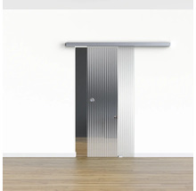 Pertura Glasschiebetür Komplettset Glera Ripple 02 1025x2050 mm Rechts inkl. Beschlag Selir Aluminium Edelstahloptik,Griffmuschel
