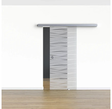 Pertura Glasschiebetür Komplettset Glera Tidal 02 1025x2050 mm Rechts inkl. Beschlag Selir Aluminium Edelstahloptik,Griffmuschel
