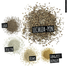 Das rein mineralische Pflanzsubstrat LECHUZA-PON schafft ideale Bedingungen für alle Pflanzen - insbesondere für Zimmerpflanzen. Durch die strukturstabile Zusammensetzung ist LECHUZA-PON die perfekte Alternative zu herkömmlicher Blumenerde. Optimale Nährstoff- und Wasserversorgung! LECHUZA-PON bietet Pflanzen ein optimales Luft-Wasser-Verhältnis, einen stabilen pH-Wert und fungiert als Speicher für Wasser und Nährstoffe, welche bedarfsgerecht und individuell wieder an die Pflanzen abgegeben werden. Dank der ausgezeichneten Drainagefähigkeit des mineralischen Substrats hat Staunässe keine Chance und Wurzelfäule wird vermieden. Auch ist das Substrat besonders strukturstabil, womit es den Pflanzen im Gefäss einen festen Stand bietet. LECHUZA-PON besteht aus hochwertigem Zeolith, Waschbims und Lava und bleibt durch seine spezielle Zusammensetzung strukturstabil, denn im Vergleich zu Erde kann PON sich weder verdichten noch verklumpen. Das Substrat ist bereits vorgedüngt und versorgt Pflanzen für 6-8 Monate mit Nährstoffen ohne, dass nachgedüngt werden muss. Durch die rein mineralische Basis bietet das Substrat keine Angriffsfläche für Pilze oder Schädlinge wie beispielsweise Trauermücken und eignet sich somit hervorragend für Allergiker. Die beste Wahl für Zimmerpflanzen! Bestandteile: Bims, Lava, Zeolith, Düngemittel.Hinweis: Für den Einsatz essbarer Pflanzen geeignet