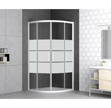 Runddusche mit Gleittür/Schiebetür form&style Moorea 90 x 90 cm Profil weiss Glasdekor Querstreifen Schmutzabweisende Glasbeschichtung Türanschlag links Türanschlag rechts