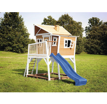 Spielhaus mit Stelzen axi Max 432 x 193 cm Holz braun inkl. blaue Rutsche