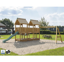 - SerienausstattungGrundturm, Rutsche, 2 Brettschaukeln, Sandkasten