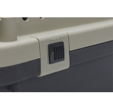 Die Karlie Transportbox Nomad bietet Hunden auf Reisen einen angenehmen Rückzugsort und garantiert einen komfortablen und sicheren Transport. Sie ist das mobile vertraute Heim und ideal für Fahrten mit dem Auto oder dem Zug sowie für Flugreisen. Natürlich kann sie auch zu Hause zum Einsatz kommen. Die solide, starre Konstruktion aus hochwertigem Kunststoff und Metallgitteröffnungen sorgt dafür, dass die Box einigem Stand hält und der Hund verlässlich untergebracht ist. Das praktische Schliesssystem ermöglicht ein schnelles Öffnen und sicheres Verschliessen der Türen. Die Boxen verfügen über einen praktischen Tragegriff. Die grossen Boxen werden mit einem Rollenset bestehend aus zwei Vorderrädern und zwei Hinterrädern für eine einfache Verwendung und einen leichten Transport geliefert. Belüftungsschlitze sorgen für eine gute Luftzirkulation. Die Transportbox kann problemlos gereinigt werden. Dazu können Ober- und Unterteil ganz einfach auseinandergenommen werden.