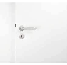 Festgenagelt: Diese Rosettengarnitur aus satiniertem Edelstahl verpasst jeder Zimmertür eine schwungvolle und moderne Note