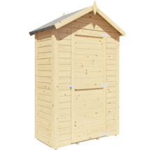 Darum sollten Sie zugreifen: Auch mit kleinem Garten müssen Sie auf ein praktisches Gartenhaus nicht verzichten, denn das naturfarbene Gartenhaus ist mit seinen Aufstellmassen von 120 x 62 cm besonders kompakt. Dank dem vollständigen Elementbausystem mit Fussboden kann das Gartenhaus schnell und einfach montiert werden. Das Wandhaus hat eine rund 0,75 Quadratmeter grosse Aufstellfläche und bietet rund 1,28 Kubikmeter Stauraum. Mit einer Wandstärke von 14 Millimeter ergibt sich eine sehr stabile Konstruktion.