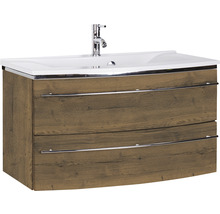 Waschbecken mit Unterschrank Marlin 3040 BxHxT 92.4x90x48 cm Frontfarbe eiche struktur braun