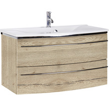 Waschbecken mit Unterschrank Marlin 3040 BxHxT 92.4x90x48 cm Frontfarbe eiche struktur natur