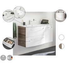 Ein elegant geschwungenes, weißes Mineralgussbecken, ein weißes Glasbecken in 80 cm Breite oder ein Mineralgussbecken in 115 cm Breite in rechter und linker Variante eröffnen viel Spielraum für praktische und kreative Gestaltung des Waschplatzes. Neben dem Doppelschub-Unterbau kann VERONA beliebig mit Zusatzschränken wie Unterbauschränken – diese gestatten große Ablageflächen neben dem Waschbecken -, Midi- und Hochschränke in Einzel oder Doppelausführung erweitert werden. Die 60 cm breiten Doppelschränken sind zudem in der Ausführung mit Innenschubladen lieferbar.