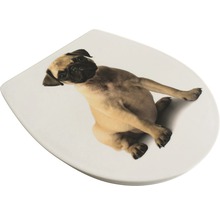 Nicht nur für Hundeliebhaber……. Dieser Design WC Sitz mit seinen glatten Kanten ist aus Duroplast gefertigt, 2,5 kg schwer. Das Motiv befindet sich auf der Deckeloberseite, Deckelinnenseite und Ring sind in weiss gehalten. Eine Absenkautomatik sorgt für leises und sanftes Schliessen. Auf Knopfdruck lässt sich der WC Sitz einfach zur Reinigung von der Keramik abnehmen und danach wieder aufstecken. Verstellbare Scharniere sorgen dafür, dass er auf allen handelsüblichen WC's passt. Die Montage kann von oben oder traditionell von unten erfolgen, beide Möglichkeiten liegen bei. Der perfekte WC Sitz für Ihr Bad und Ihre Gästetoilette.