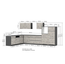 Produktmerkmale der Held Möbel Winkelküche ohne Geräte PISA 360 cm Wildeiche matt zerlegt Variante reversibel