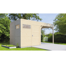 Abri de jardin Bertilo Cubo 2 avec extension de toit et plancher 449 x 240 cm naturel