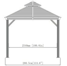 La différence majeure par rapport aux autres pavillons réside dans le matériau du toit. De l'acier durable et plus élégant est utilisé ici à la place de plaques en plastique ou de tissu.